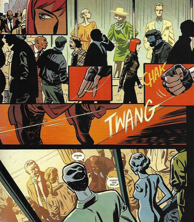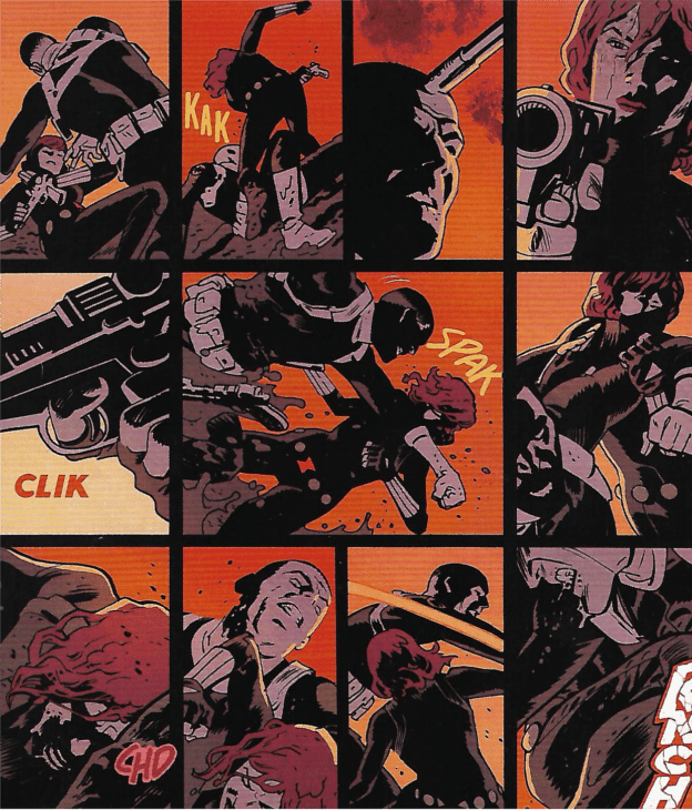 Natasha is a woman of few words. Instead of her dialogue, the comic book relies on the art to carry forward the story and the artistry of Natasha’s battles. We are almost outsiders, looking in at, much like the henchmen, SHIELD Agents, and even the occasional Avenger trying to pin her down and understand who she is.